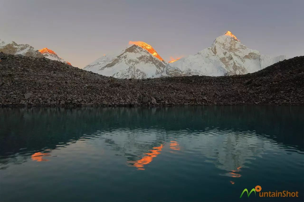 (Pumuri\普莫里峰和Pumuri Lake III↑)