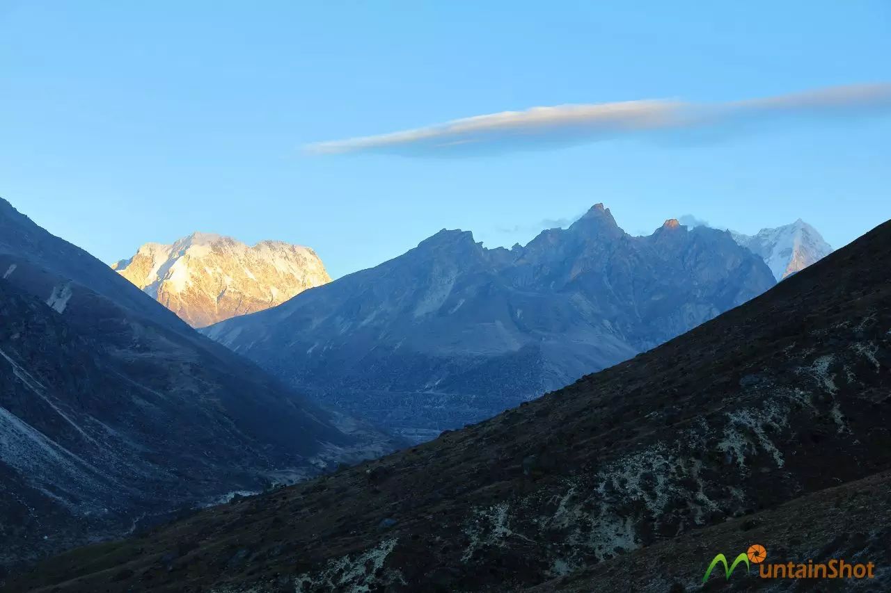 离开Gorakshep,我选择翻越Cho La到Gokyo的前进路线,这也是大多数人的选择,于是从Gorakshep到Zonglha为翻越Cho La做准备。由于Zonglha并不出名,我事先没有做过多研究,到了才发现这里原来是拍摄Ama Dablam日照金山的绝佳之地,当然这要天气配合,我没碰到这样的好运气。