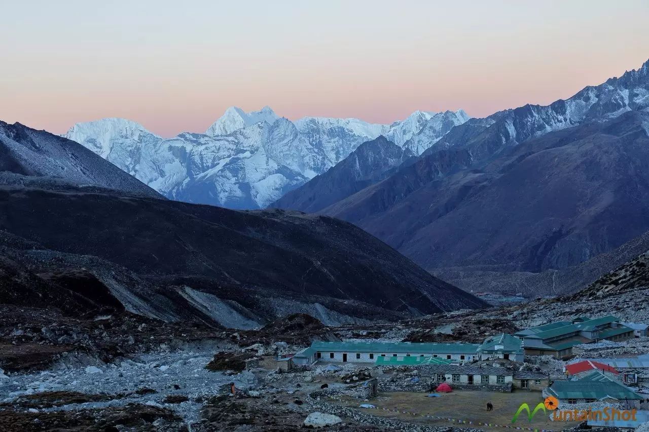 Chhukhung是距离洛子峰最近的村庄,虽然它的名气远不及Gorakshep和Gokyo,但风景也是非常的震撼。下图中近处村庄即为佛晓时分的Chhukhung,冰冷,荒凉,孤寂,远处最高的雪山是Number\南布尔。