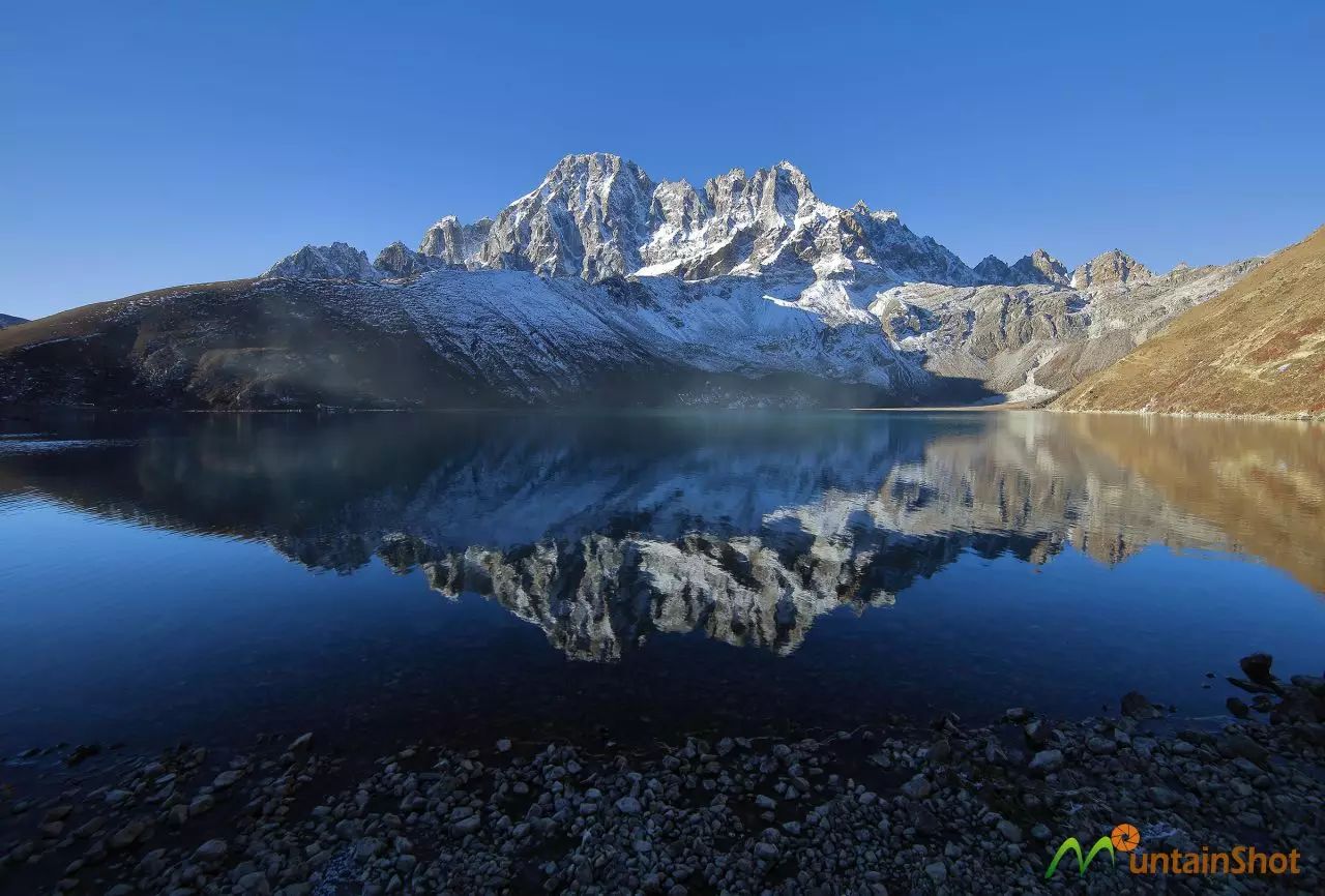 (Gokyo Lake III和南岸的库姆切山↑)
