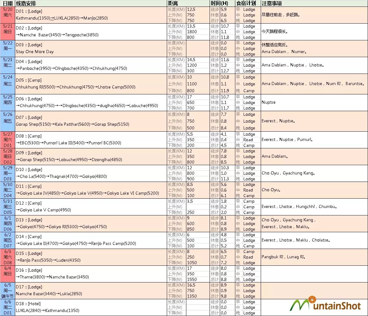 (Sagarmatha徒步建议计划书↑)