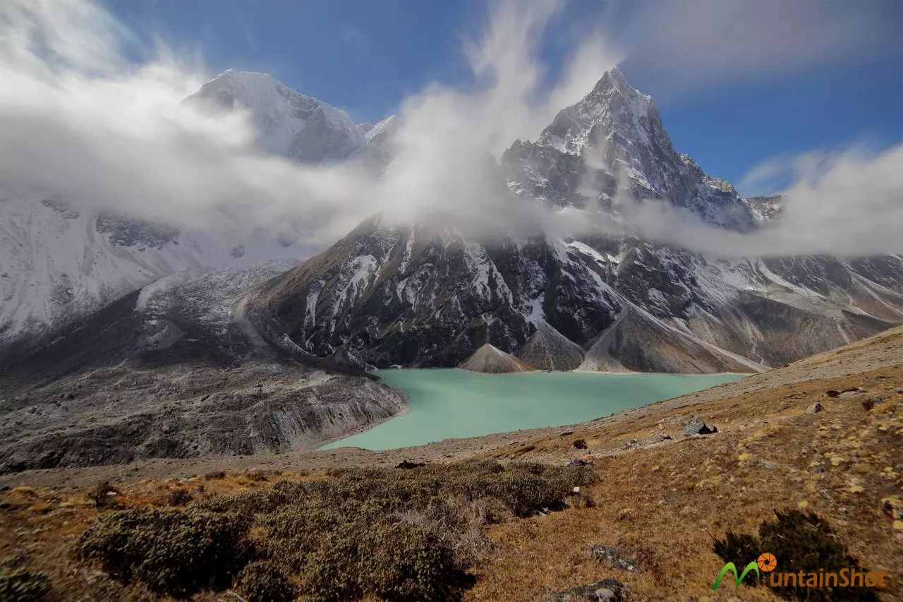 Gokyo第二湖和第三湖非常近,向下徒步不用半个小时便可到达,这里是欣赏Cholatse和Tuboche的好地方,从这个角度看Cholatse特别漂亮。