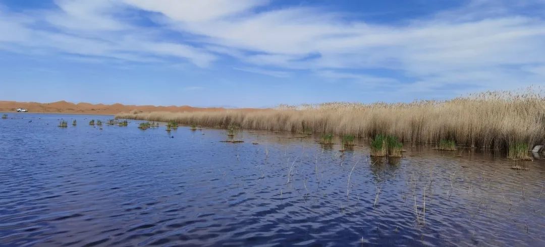 月亮湖是腾格里沙漠中的天然湖泊,也是全球最具影响力的沙漠深度旅游体验地之一,核心区范围达 150 平方公里。月亮湖水面约 2000 余亩,水深 2-4 米,南北长 2 公里,东西宽 1 公里,环湖一周 4 公里。这里碧波清幽,芦苇茂密,水鸟翔集。