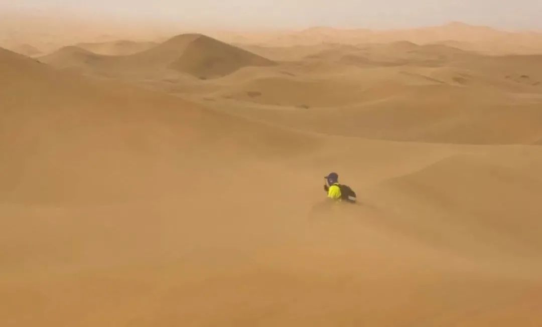 逆风而上时,脚下软绵、沙坑深陷,艰难如逆水行舟;顺风而行时,如风吹浮萍,脚步踉跄,摇晃如柳絮乱舞。