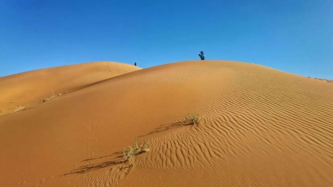 沙漠远望广阔无垠,近看沙丘跌宕起伏。