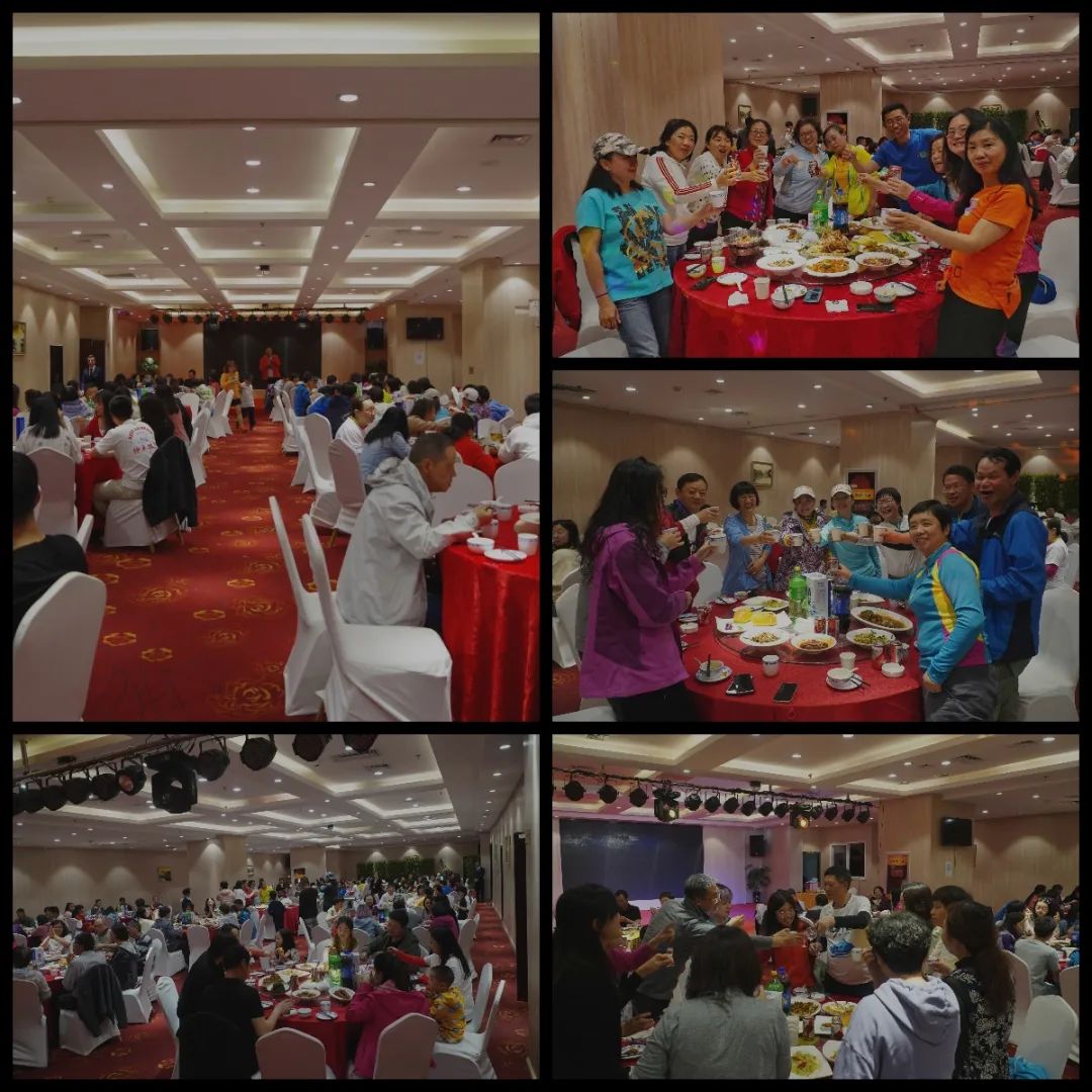 晚上 8:30 ,是庆功宴,菜品一如既往地丰盛,又恰逢六位队员的生日,烤全羊和生日蛋糕带来宴会的高潮。