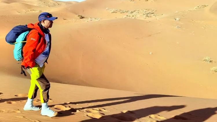 不知道翻过多少沙山,跟着手机里的计步器默数着行程的公里数。