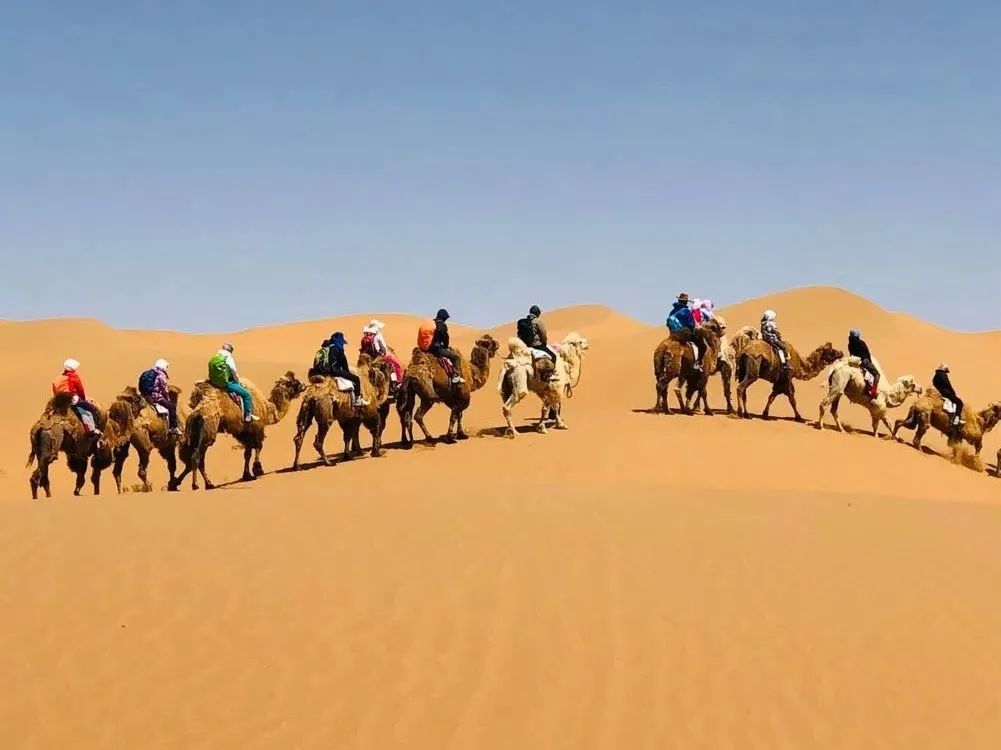 今天行程比较轻松,游玩项目多。预计徒步里程 10 公里,其中骆驼骑行 2 公里,还有月亮湖泛舟、沙漠越野 15 公里等活动。