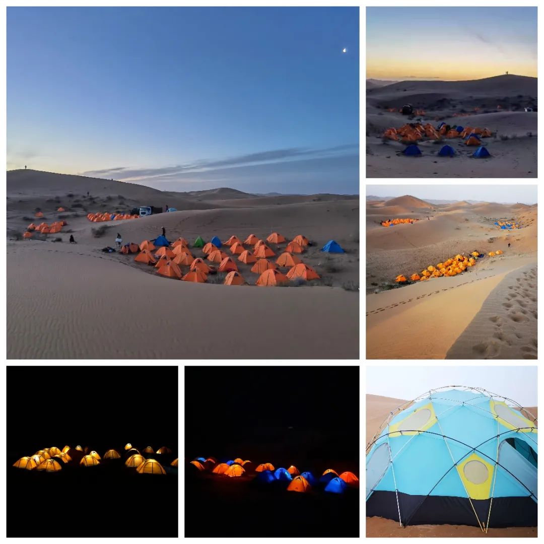 并学习了沙漠扎帐就是要“深挖坑,埋湿沙”。扎好帐篷后,帐篷里是一层沉沙,渐暗的天色也带来寒冷。