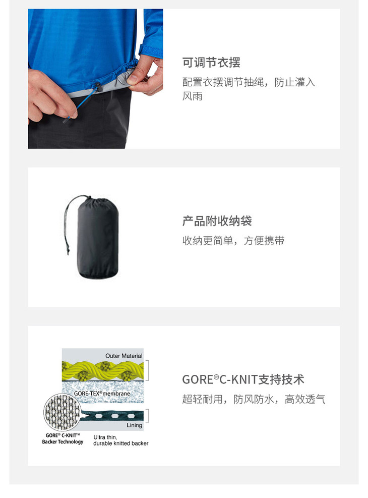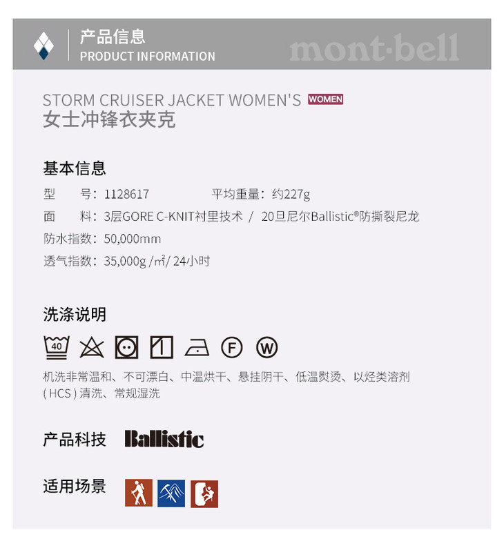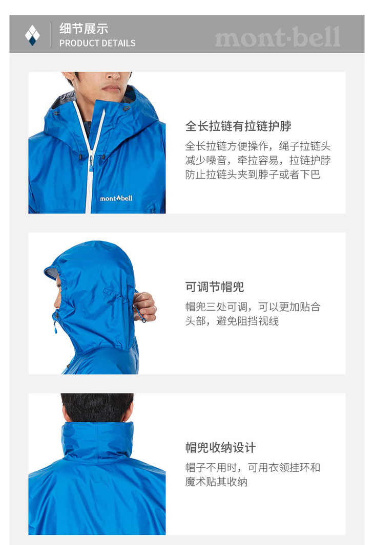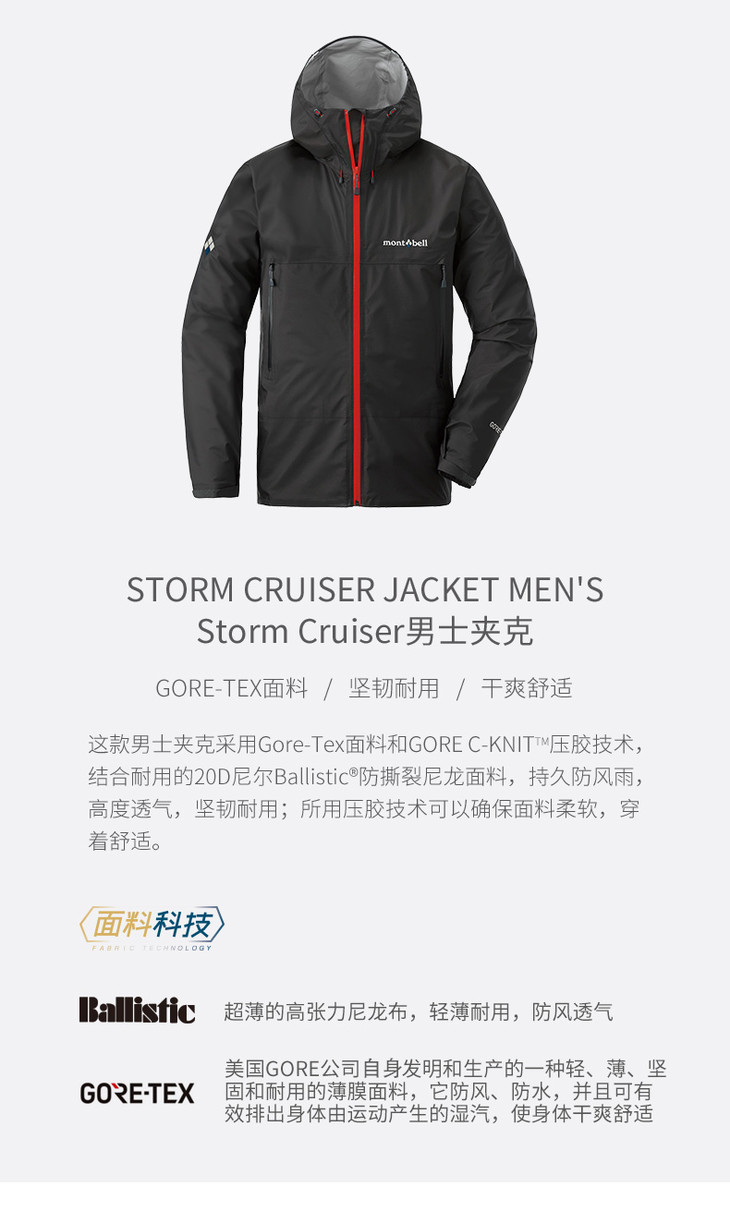 Mont-Bell 能做到如何顶级的参数得益于采用 美国GORE 公司独家发明和生产的Gore-Tex面料科技,集轻薄,耐用, 防水面料 技术;是一种可以有效排出身体由运动产生的湿气,使身体干爽舒适。