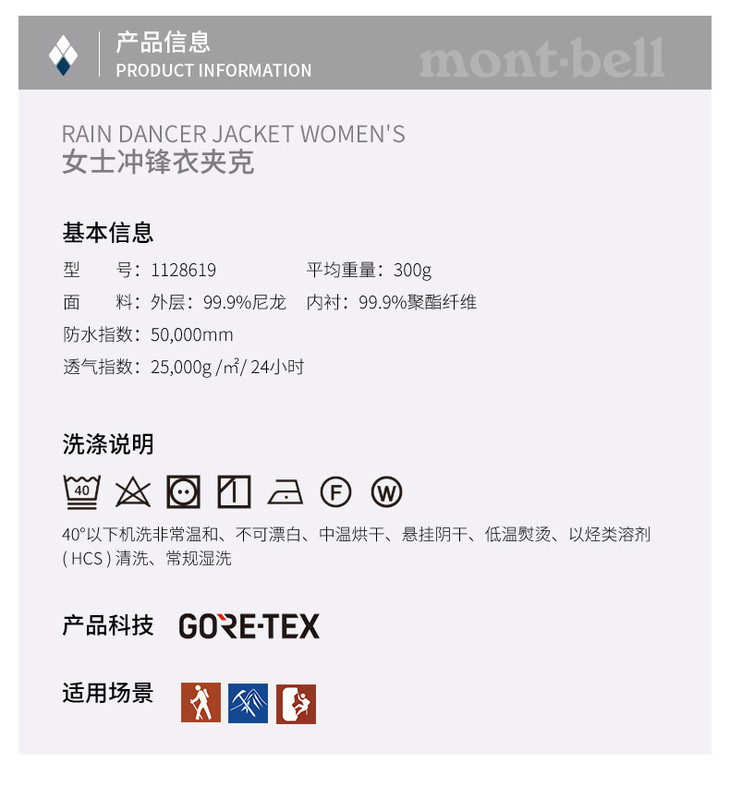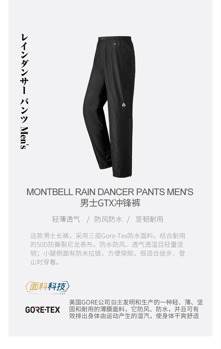 【Mont-bell Raindancer 雨舞者男女GTX冲锋衣裤】