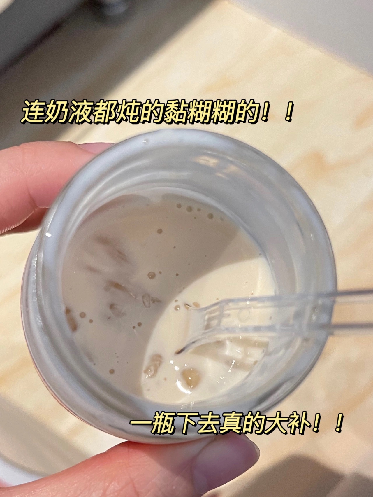 整瓶放了大块花胶和纯奶炖煮
