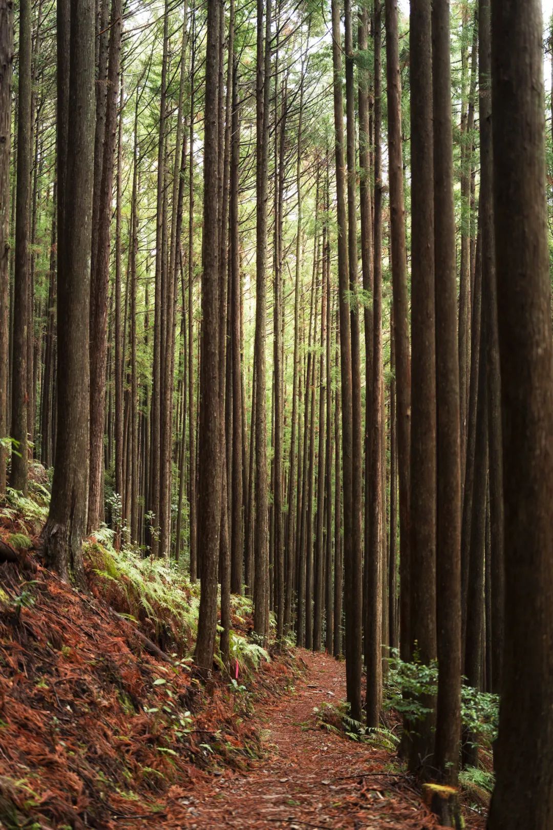 从景观上来说,熊野古道最常见的就是森林景观。深绿和淡蓝之间的杉树林有着坚定不移的凛冽姿态,比任何一种植物都更加笔直光滑。漫山杉树的颜色,一眼望去也是好看极了,峡谷一齐演奏着蓝色交响曲,是蓝色和绿色的树林混合交织出的一曲独奏。
