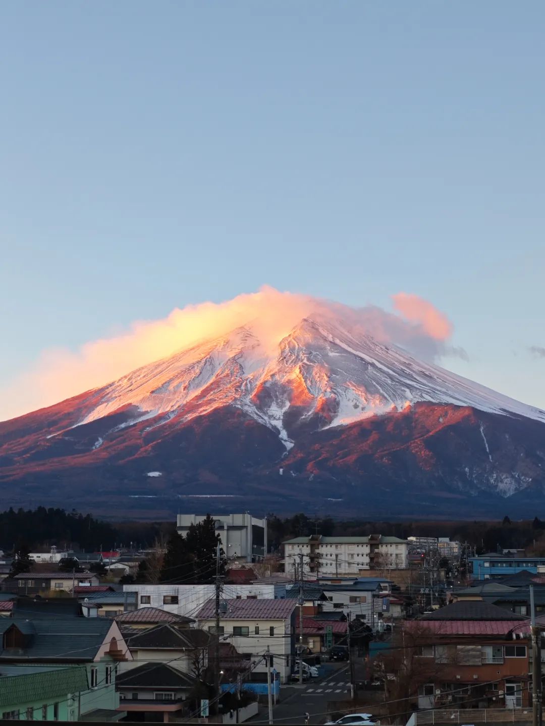 春节期间我亲眼见到了“胭脂富士”,实在是漂亮得人头皮发麻。