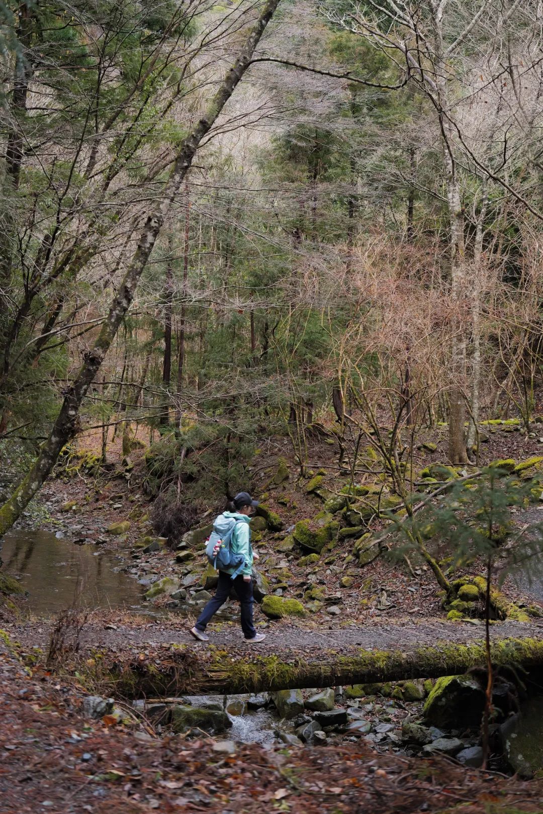 春节期间徒步熊野古道的人极少,徒步的那几天都有零星的小雨,山色空蒙雨亦奇。水田里有着稀疏的绿意,偶有炊烟升起,那景象比任何宣传照中都更加静谧。相比在大阪心斋桥的游人如织,我觉得这份不被打扰的寂静才像是日本的原风景。
