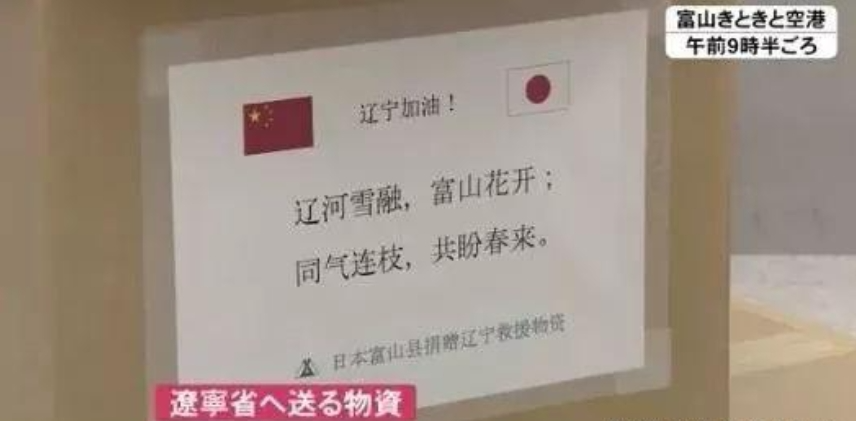 站在富士山脚下,突然想起疫情期间富山县曾给我们援助过物资,物资箱上写着:辽河雪融,富山花开;同气连枝,共盼春来。