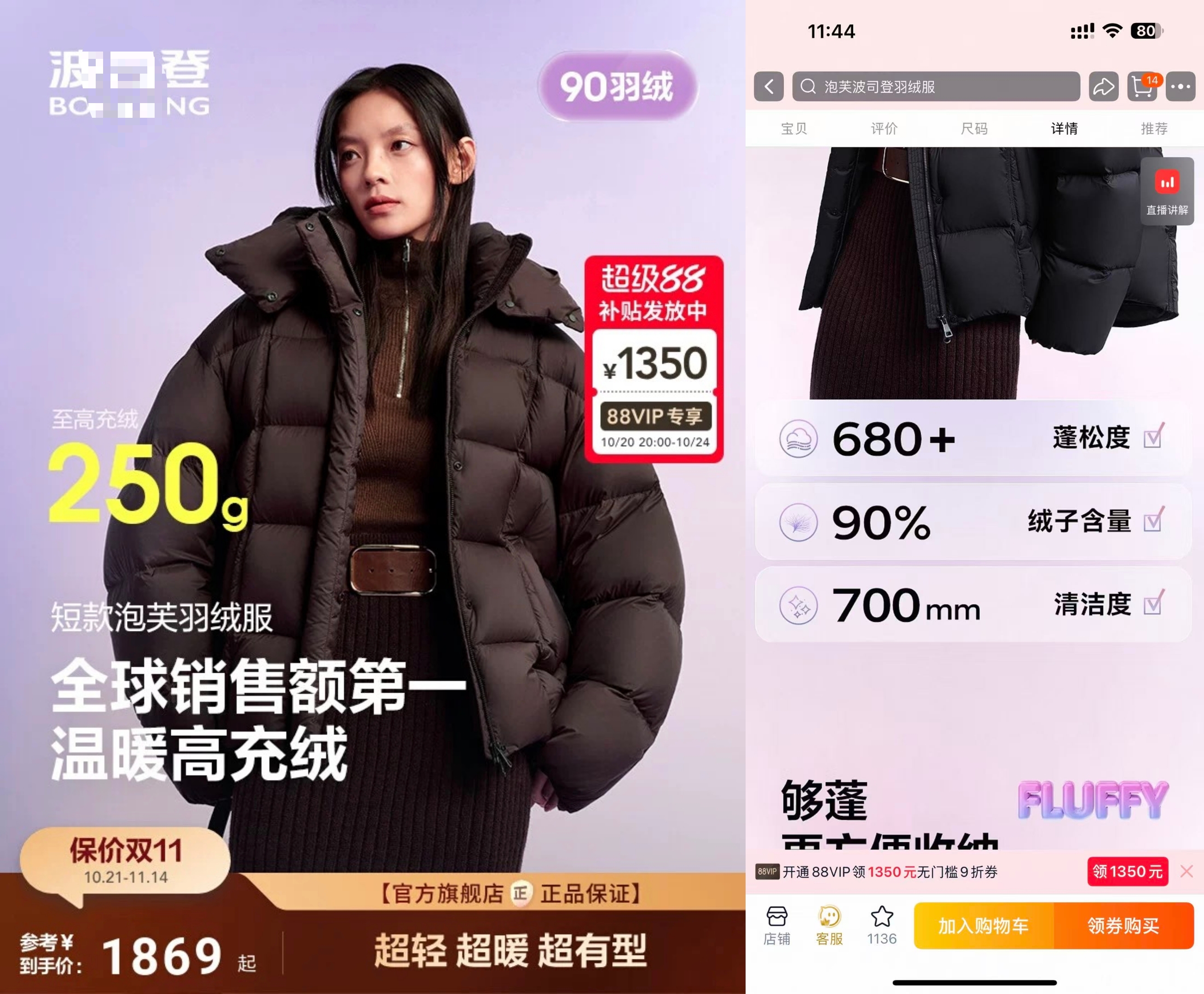 到手价 1699 加赠羽绒围巾一条