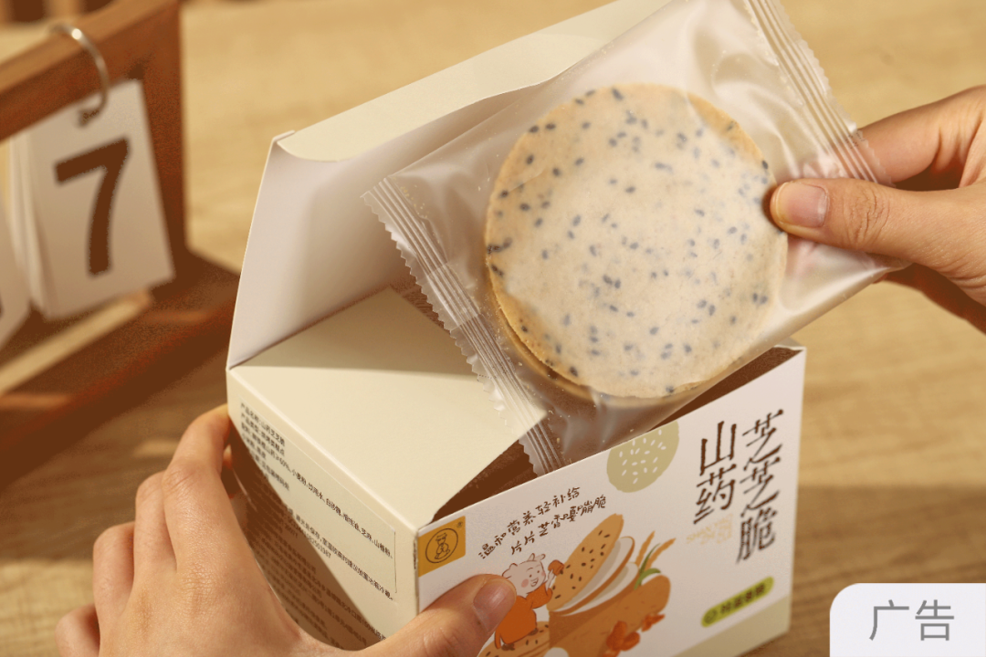 这款山药芝芝脆都是独 立包装的小袋设计,方便携带。