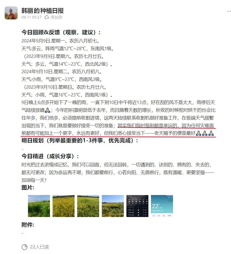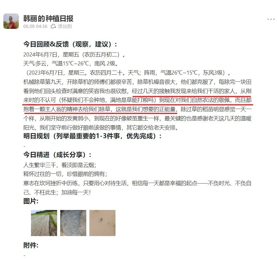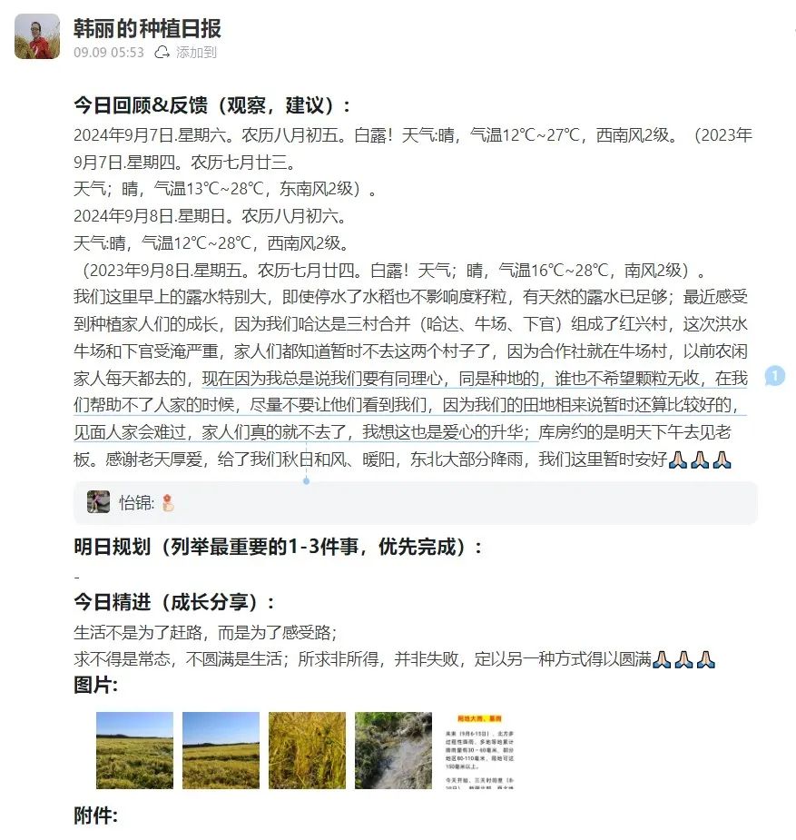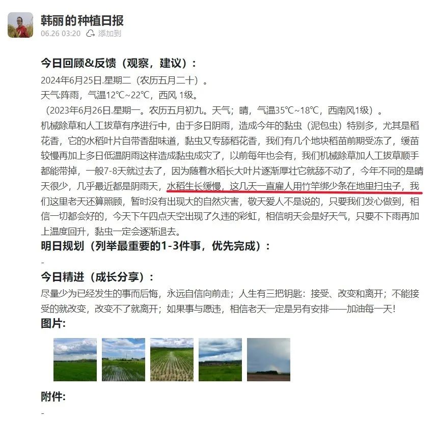 东北人有个共同一个特点——会唠嗑,和韩姐聊天就感觉特别亲切,没有距离感。她说,我是把水稻当儿子在养。