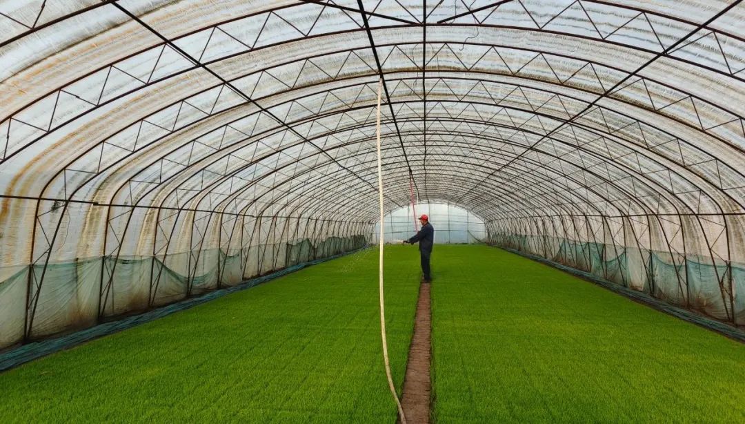 牡丹江4月份播种的时候气温还很低,乡亲们甚至还会穿着棉衣干活。害怕秧苗缓不过来,韩姐早早和基地的伙伴们一块搭建了大棚,在棚内升温育秧,这在当地是最早的。因为不用包衣剂等药品处理种子,每次翻开秧盘,都能看到很多蚯蚓,苗上挂着蜘蛛网,甚至还有抱着卵的小蜘蛛在苗间爬来爬去。东北温度较低 需要密封的拱棚来保持育秧温度 所以在育秧前会架“暖棚”