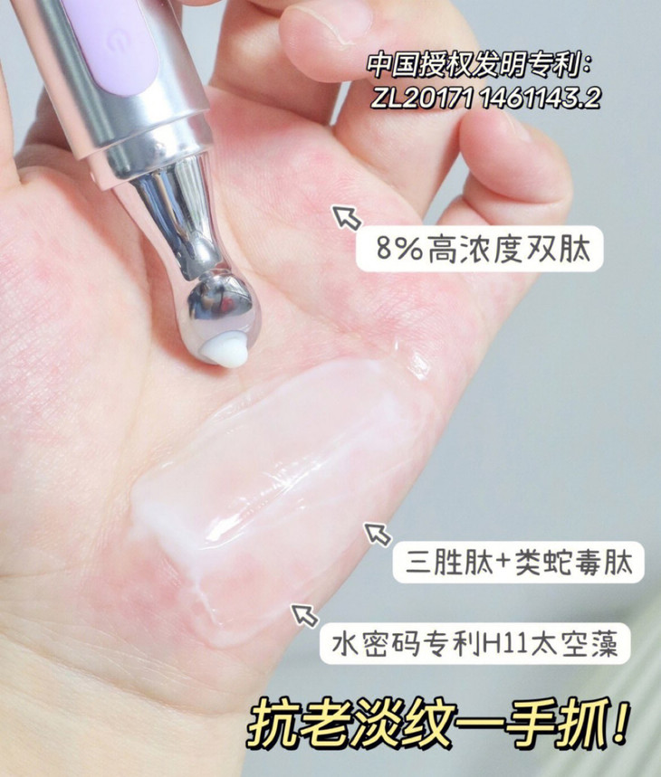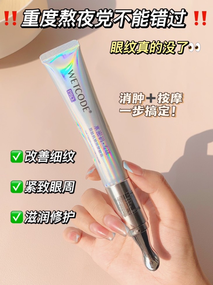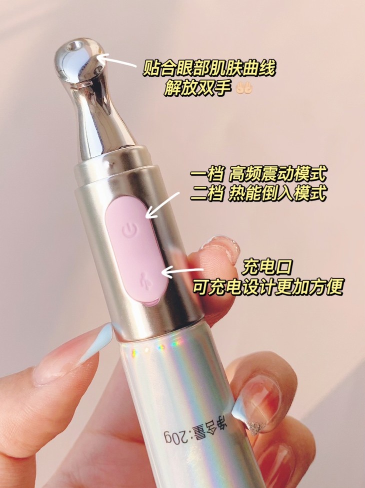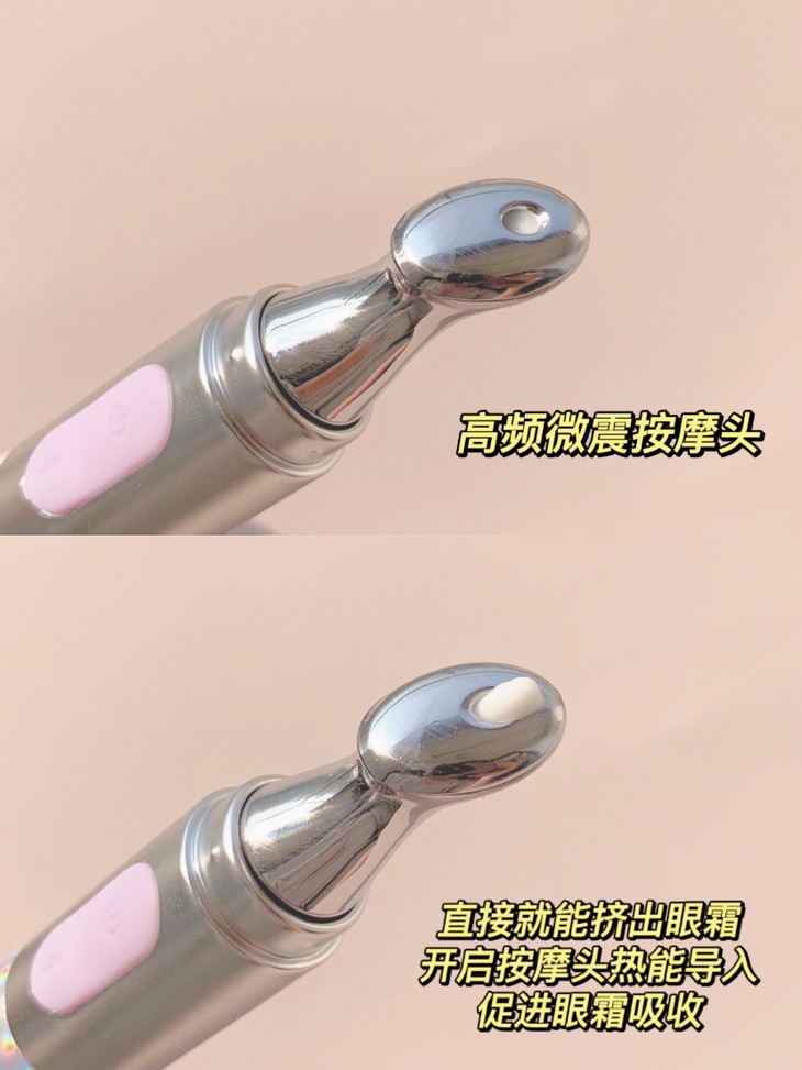 而这款眼霜的特别之处在于它的电动按摩头,只需要将按摩头轻轻按压在眼睛周围就可以舒缓眼部疲劳