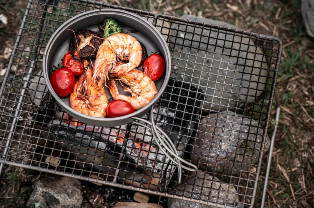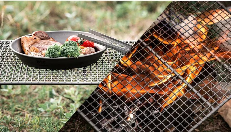 Ø折叠钛网桌,可以作为户外桌,置物架或是烧烤网,收纳后小巧不占空间。