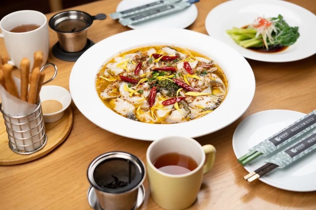 以真正好的茶叶为根基,通过单品爆款的酸菜鱼来引流,再通过年轻的装修、配套的菜单和方便的茶杯来转化。