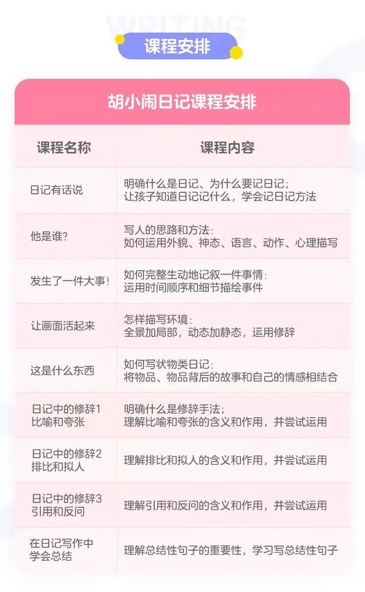 以大热校园IP胡小闹为切入点,用轻松的故事题材激发孩子的写作兴趣,学习4类文体技巧,6类修辞技巧,从模仿复述到总结,帮助孩子梳理写作思路,从现实视角选题,培养孩子变被动写作变为主动写作,不再无从下笔,写作杂乱无章。