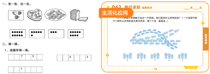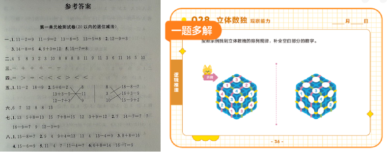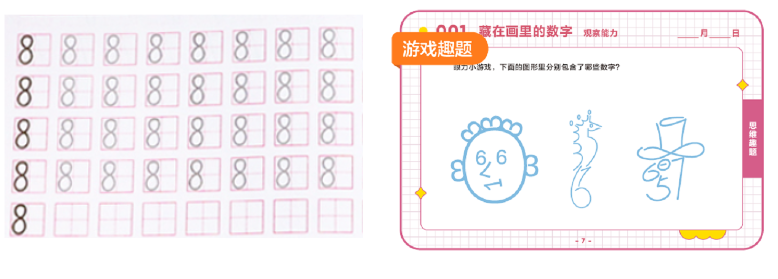 思维挑战:数字融入图画,不仅考察数字识别,还训练了观察能力、创意能力,能够有效避免低年级常出现的漏题缺数粗心大意问题。