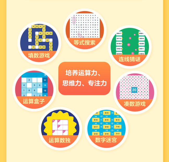 每个游戏中隐藏多道运算题目,培养运算力、思维力 、专注力