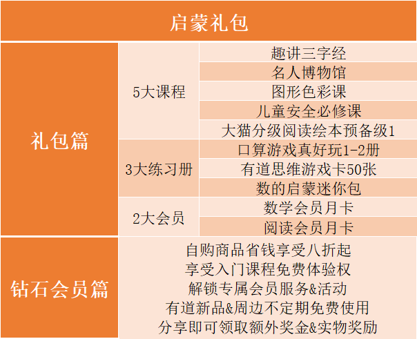5套素质启蒙课+3套实物学习成长礼+2大乐读APP王牌VIP卡