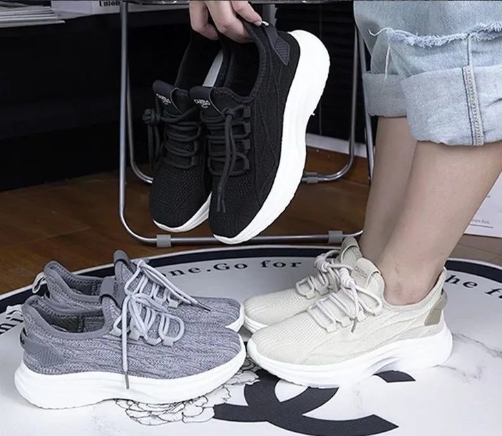 米色,沉稳大气,清爽又潇洒。 还是情侣款哦,女生35-40码,男生39-44码,平时穿几码就拍几码,鞋子本身的弹性和包容性,让你穿上毫无压力!!! 女生穿,既能搭配休闲的T恤、短裤、牛仔裤,也能搭配元气温柔的裙子,可酷可甜; 男生穿,一条五分裤就足够阳光帅气。 上班、开车、运动、健身…舒适的“踩死感”和超高的颜值,还非常适合出差旅行都不在话下~ 比起其他跑鞋,动不动就600、700,花了大价钱可能到处撞款,穿了没几次就腻了,甚至买到的还是容易开胶开裂的鞋子。