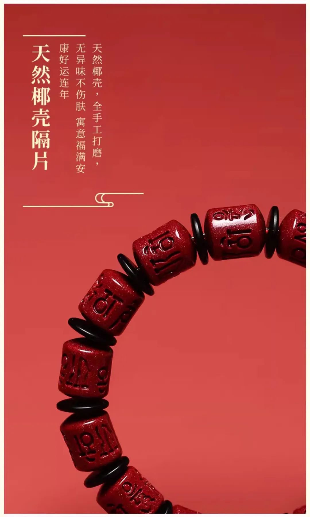 2.手工精心雕刻六字箴言,天然椰壳隔片,寓意美好。