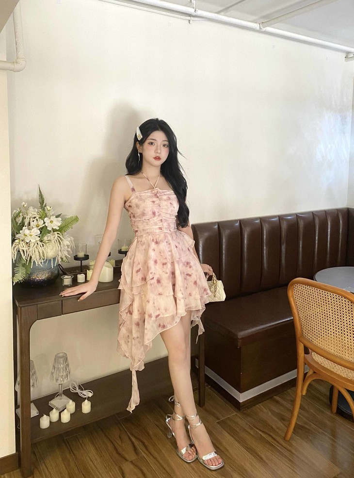 辣妹的夏天最是少不了这条碎花吊带裙