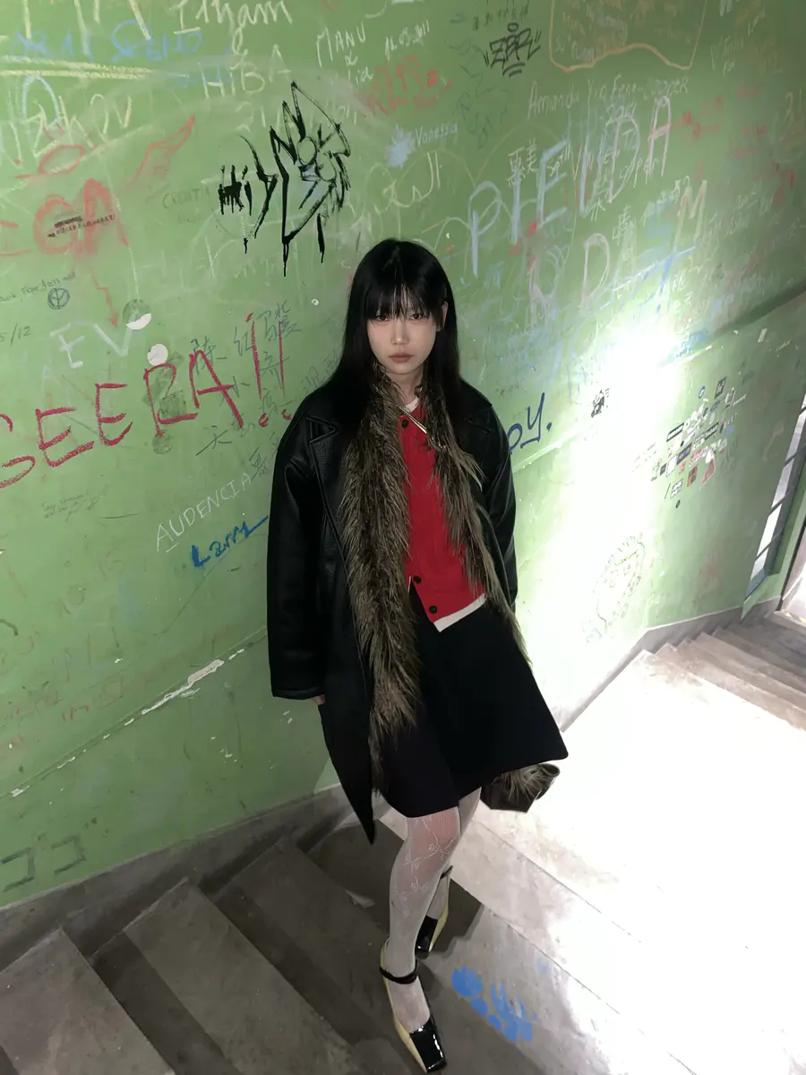 新品上身 | 可拆卸皮毛皮衣搭配,黑红撞色很温暖~💞