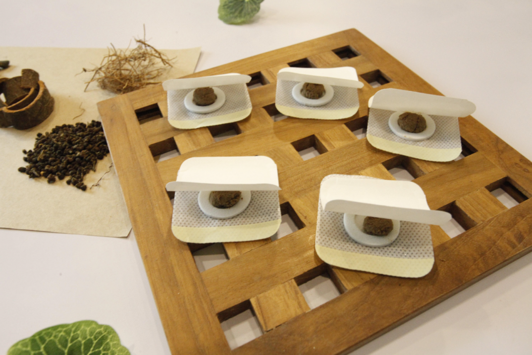 其是将配制好的中药碾磨成粉末,制成膏药,分别敷贴在人体的不同穴位上,以达到增强抵抗力、防病治病的目的。