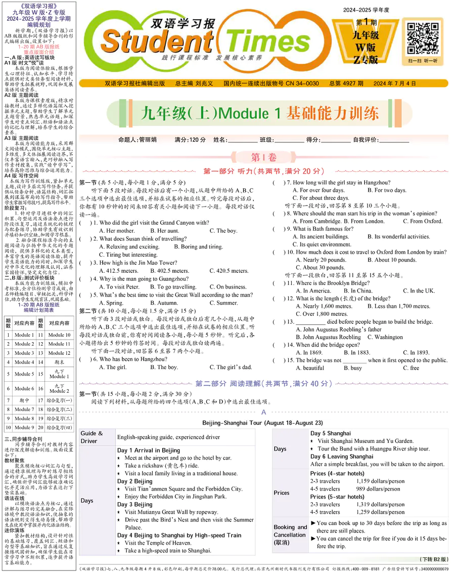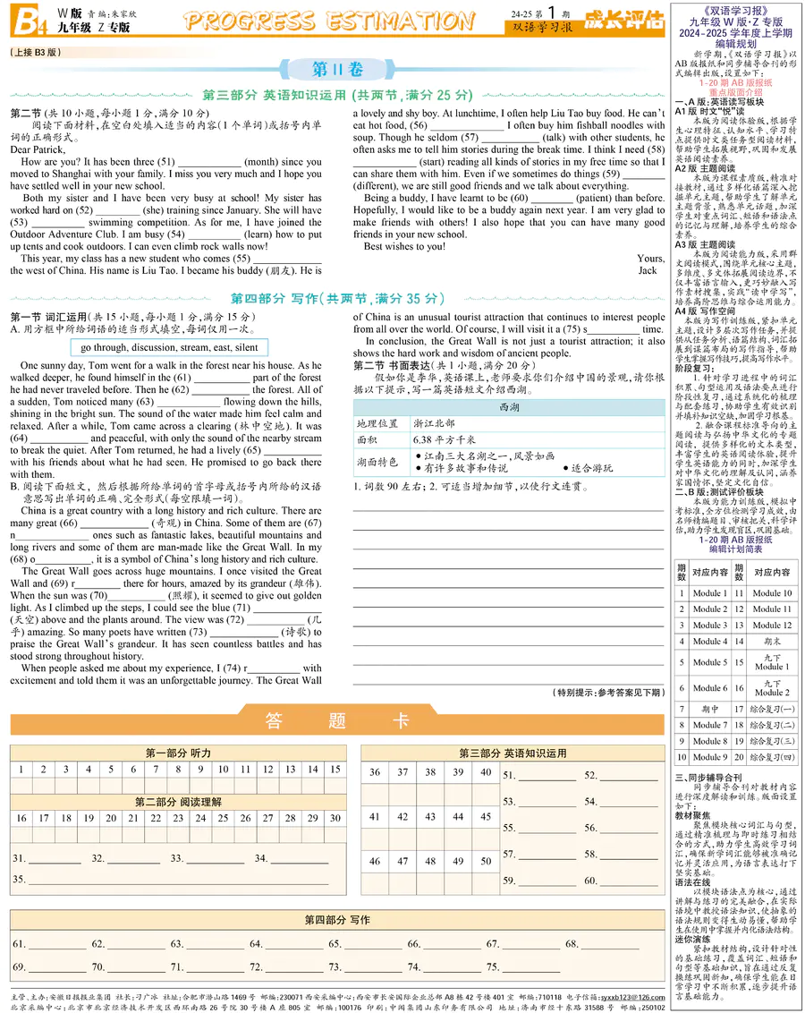 初中英语样报 九年级 W版Z专版 第1期