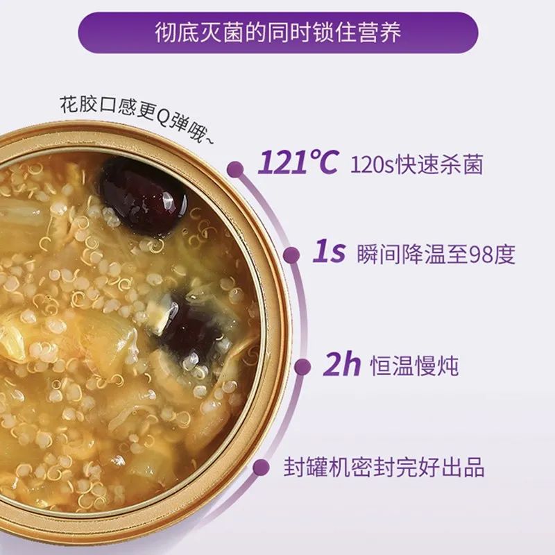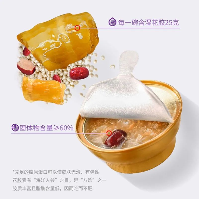 花胶的主要特点就是富含胶原蛋白,这款藜麦花胶选用的是高蛋白营养的深海花胶,而且是不含任何添加剂的天然花胶,开盖即食,不用像传统的做法需要炖上几个小时。