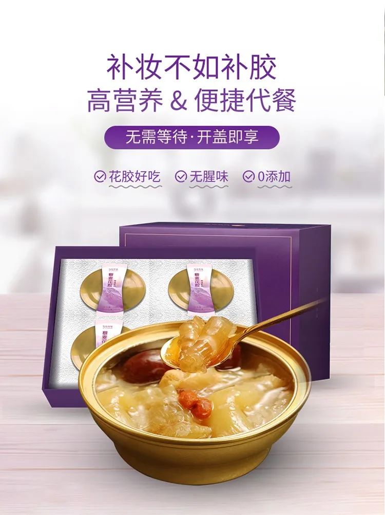 一连吃几天,猪猪女孩也隐隐有种要晋升为精致女孩的既视感啦,当减肥代餐、当下午茶小甜品,简单一瓶瞬间补充活力,刺激生活的幸福感,花胶的胶原蛋白绝对是女生最佳的养颜。