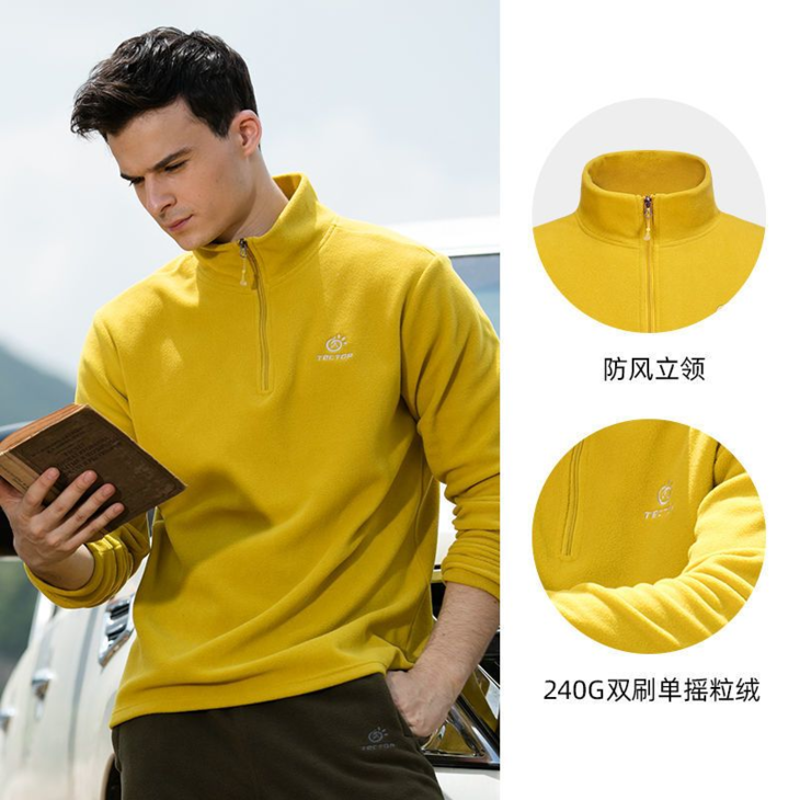 240g双刷摇粒绒软糯亲肤,快速聚热锁温,户外低温也不冻;抗静电工艺 + 防风立领,透气排湿不闷汗,可单穿可当冲锋衣内胆!
