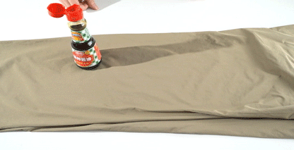 往裤子上倒酱油,哦吼!是真的防污啊!说实话,这个高科技面料确实牛!