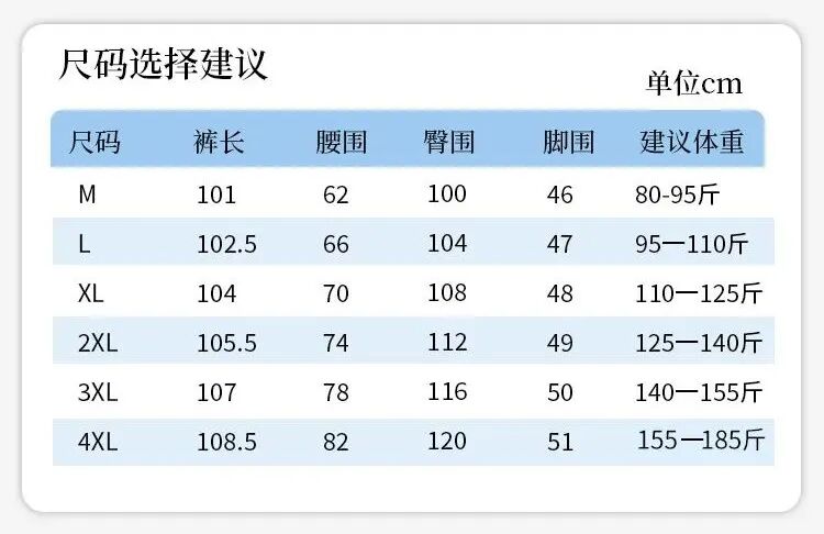 码数很多,80斤-185斤都可以驾驭,大家根据尺码表进行选择。