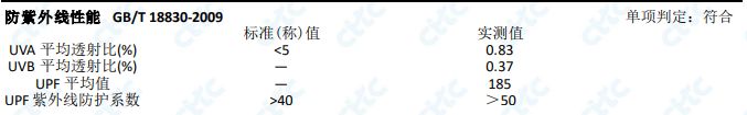 面料上加入防晒遮蔽纤维,通过第三方专业检测:面料防晒指数实测值UPF > 50。
