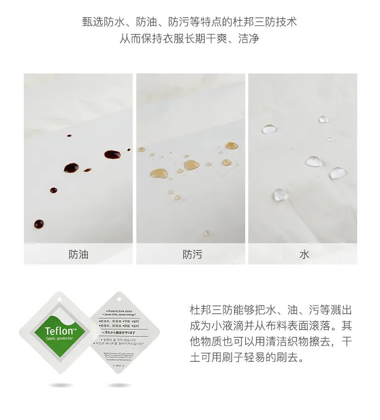 甄选防水,防污,防油等特点的Teflon ®强三防技术面料。细腻守护,妈妈更省心。