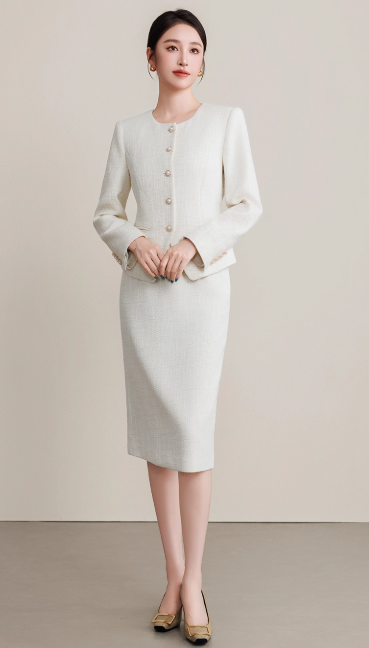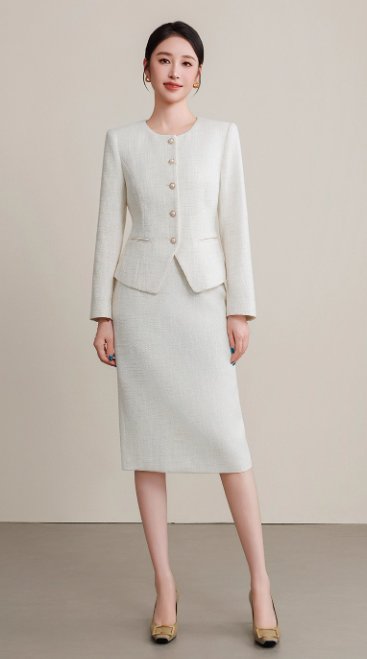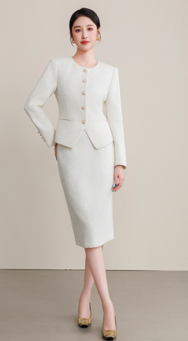 🌸 职场穿搭怕单调?这套白色套装来拯救你!柔和的米白色调,自带温柔滤镜,穿上它整个人都变得优雅又干练~