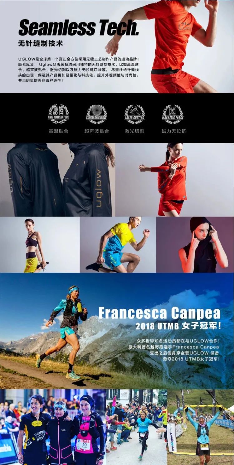 最后再为还不熟悉UGLOW的跑者简单介绍一下这个品牌:UGLOW于2015年诞生于法国,产品均采用独特的无针缝制技术,成为了全球第一个真正的全面采用无缝工艺制作产品的运动品牌!