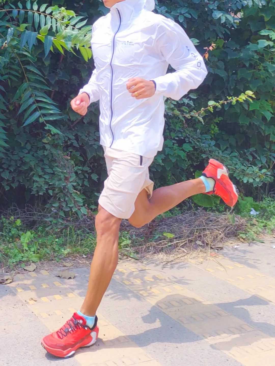 作为一款专为跑步设计的风雨衣,这件衣服的版型,自然是根据人体工学结构来进行的立体剪裁,整体修身,只为助力运动表现。