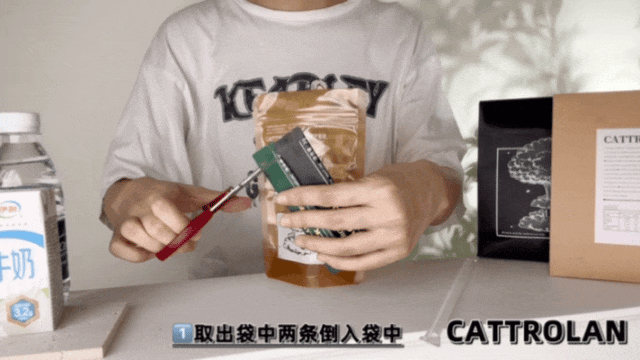 想喝时直接放在袋子里,然后放水(冰水、矿泉水、热水都可以),一摇晃就能喝了