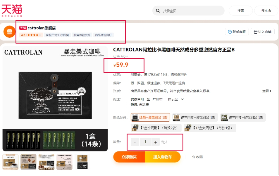 国外一盒CATTROLAN减脂黑咖啡的价格更是卖到了199/盒