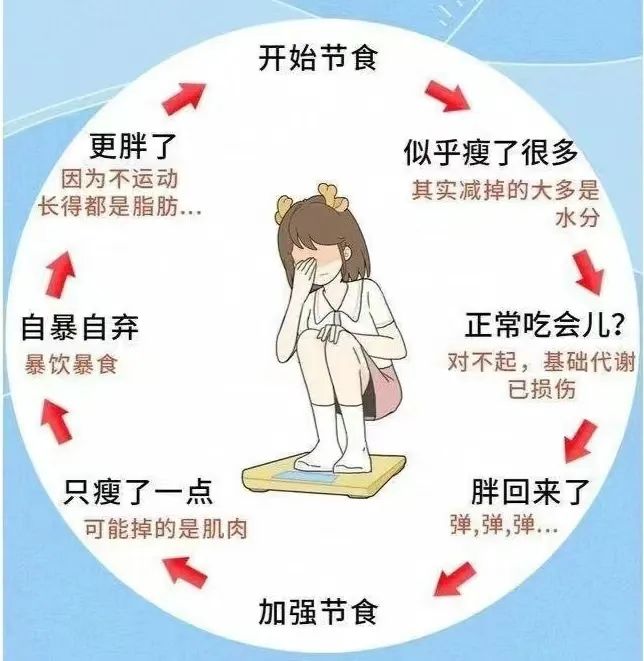 这个时候当你再大吃一顿或者稍微吃多的时候,复胖反弹的几率就会大大提高!!